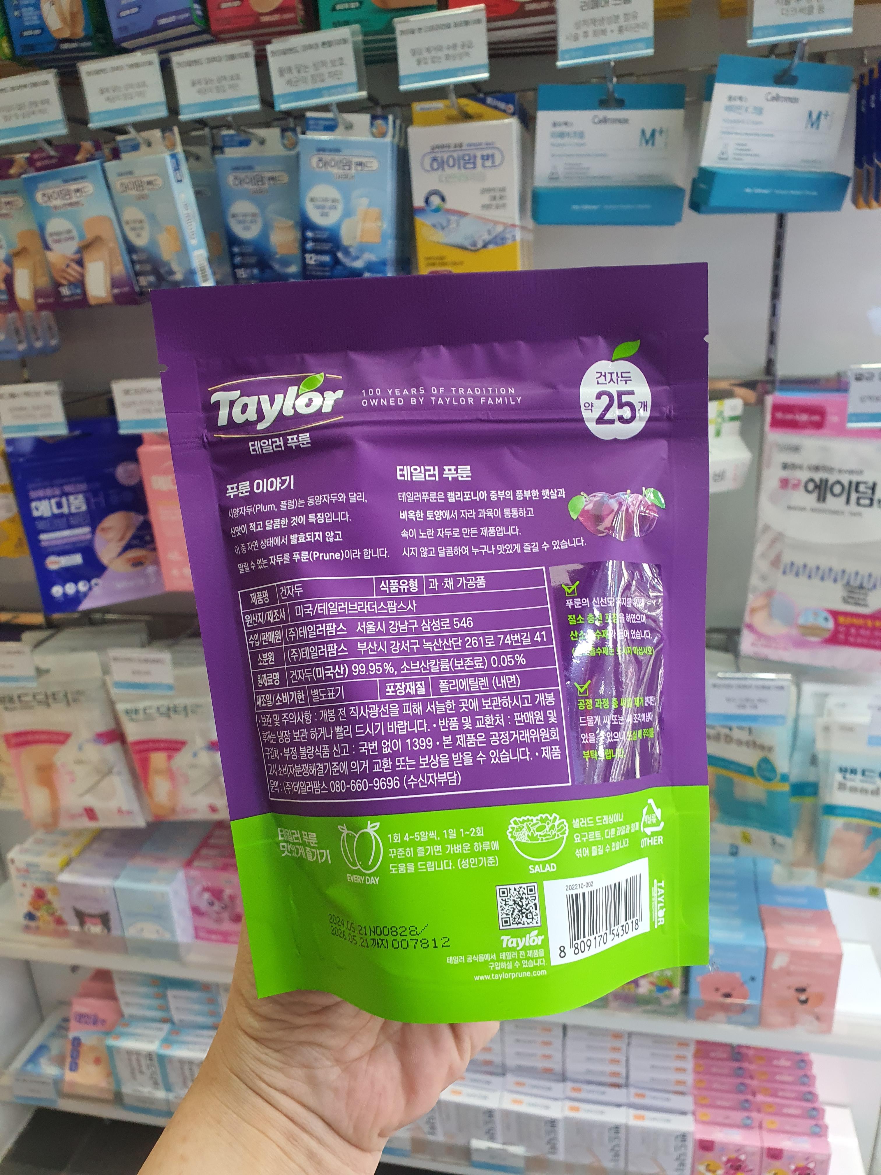 테일러 푸룬 제품 뒷면