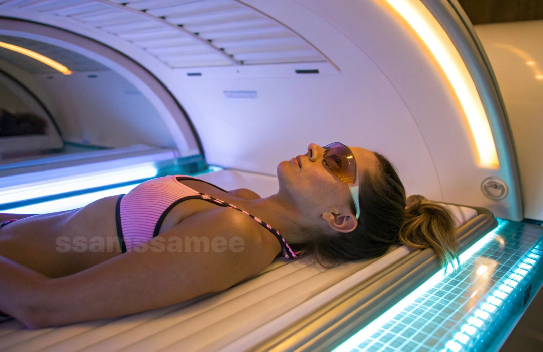 - 태닝 캡슐(선베드)에서 UVA 자외선을 쬐어 멜라닌 색소를 자극합니다.