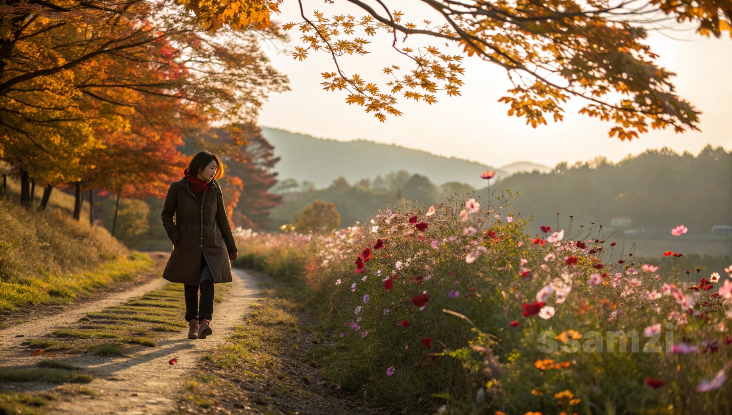 특히 해질 무렵, 붉은 하늘과 코스모스가 어우러진 풍경은 환상적입니다.
